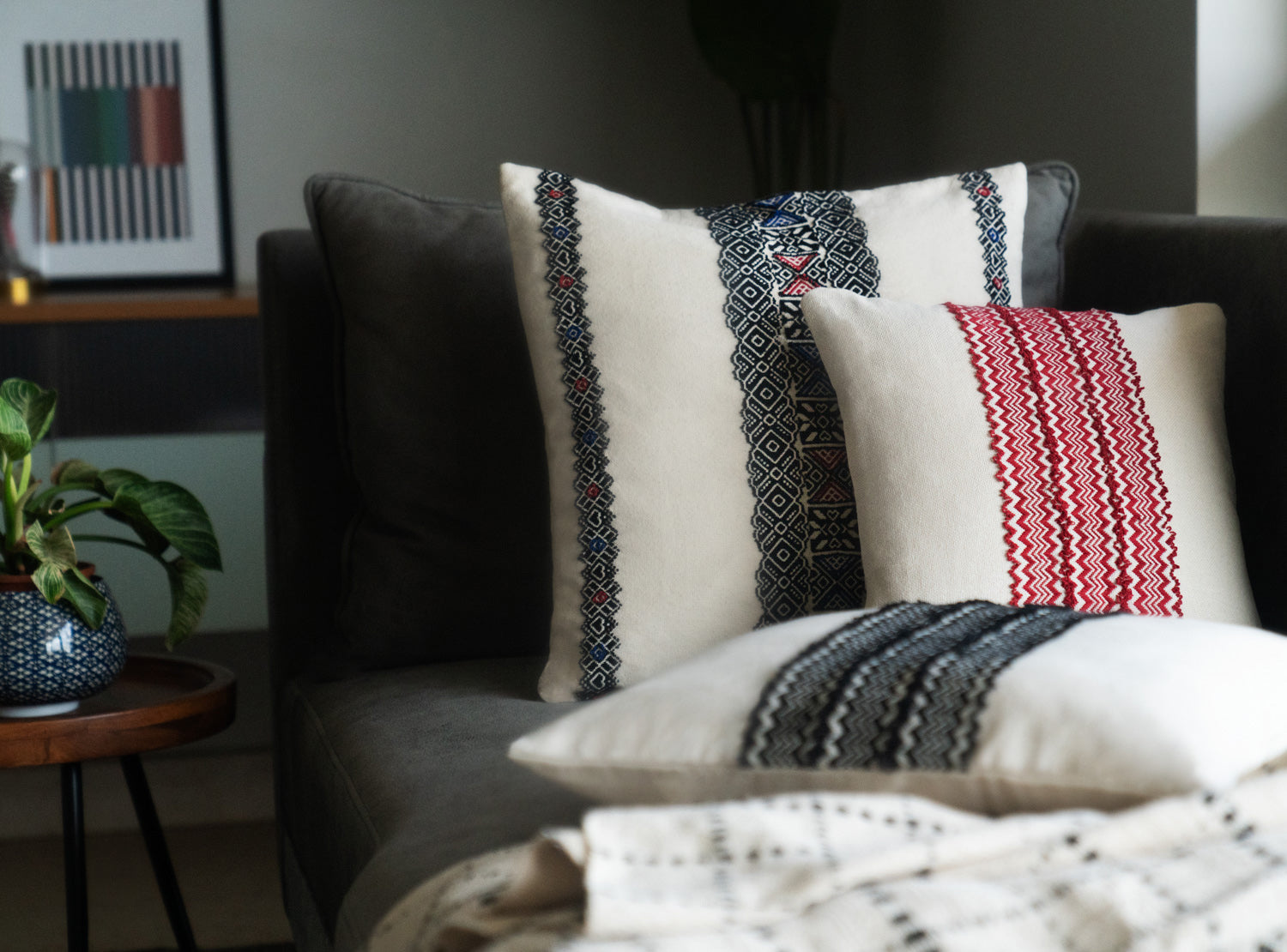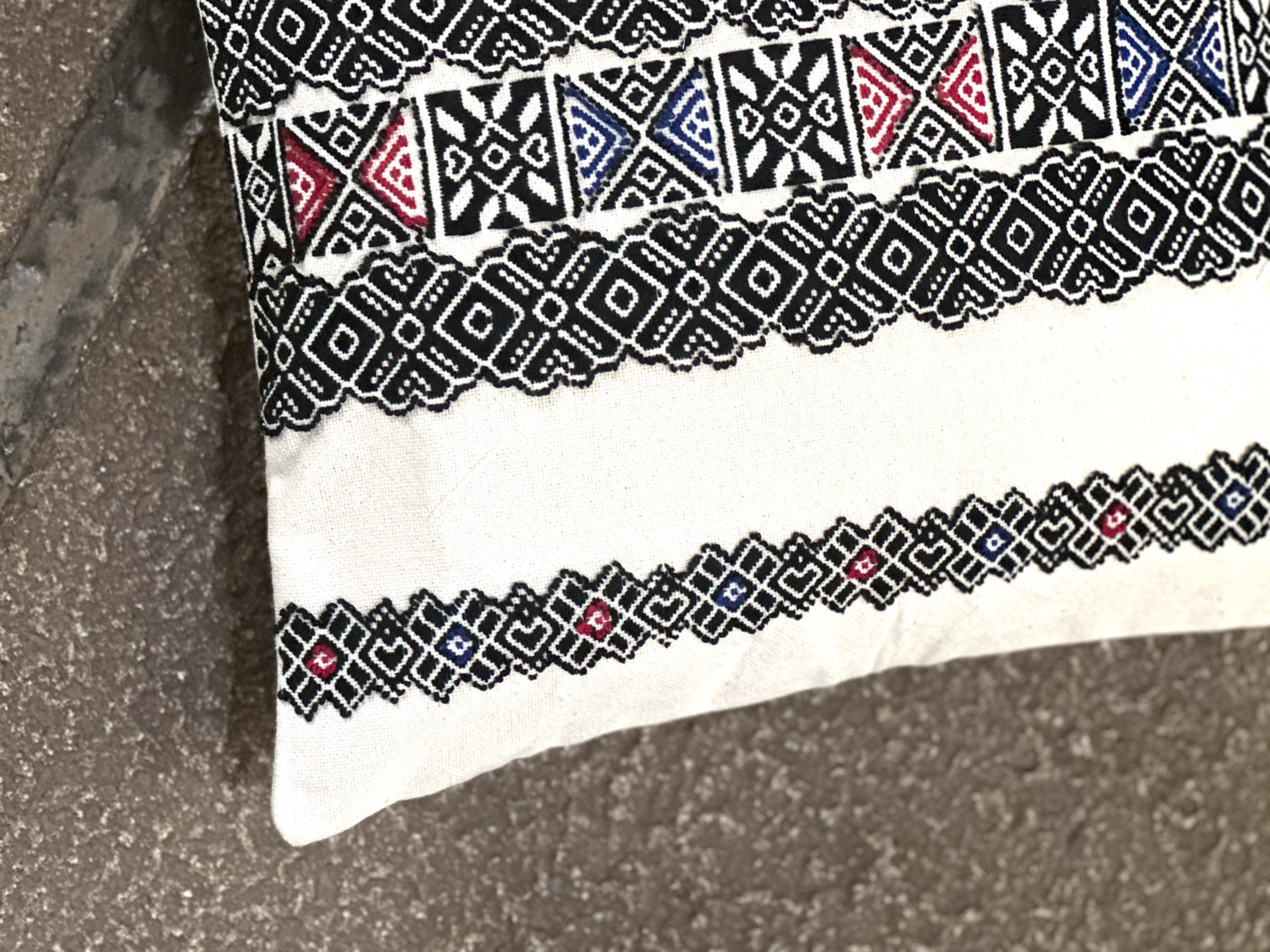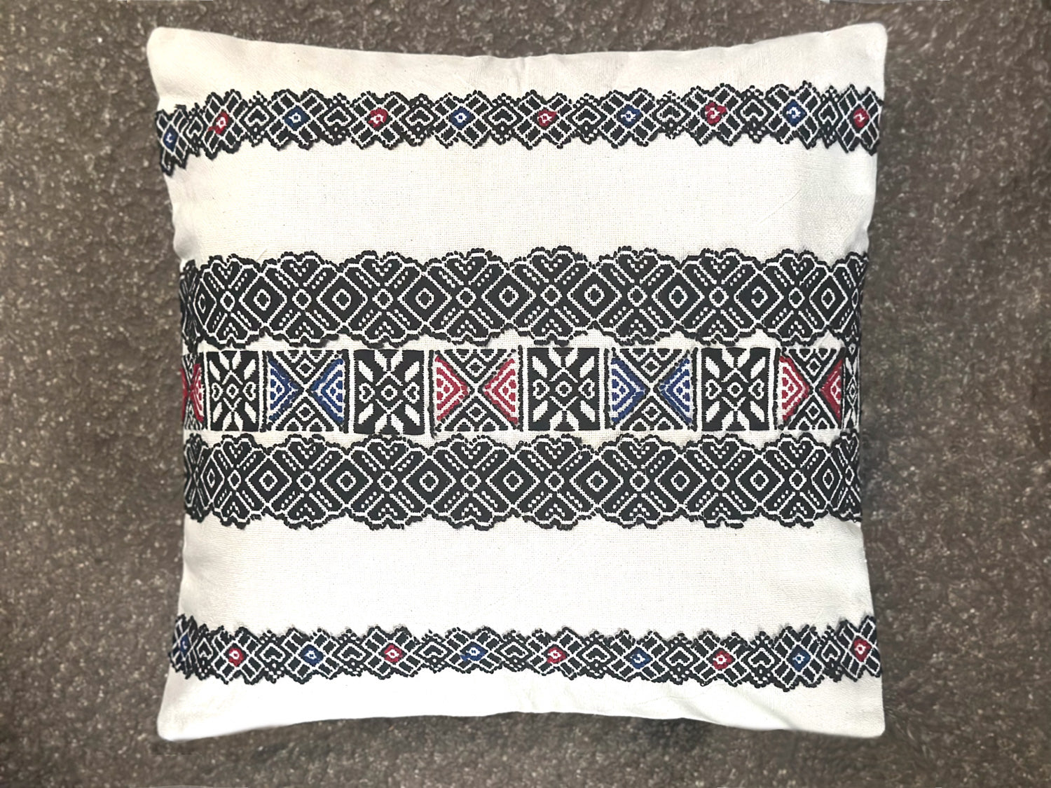 Our cushion covers spotlight the masterful GI-tagged Toda hand embroidery, introducing a vintage art form into contemporary home decor. Crafted on traditionally used cotton fabric, these covers epitomize/embody the meticulous skill and precision of the Todas’ artistry. This stunning, intricate design includes ancient and contemporary Toda motifs with accents of navy blue. Each piece is a work of art that pays tribute to the enduring craftsmanship of the Toda community, marrying cultural heritage with modern aesthetics and enhancing your living spaces.