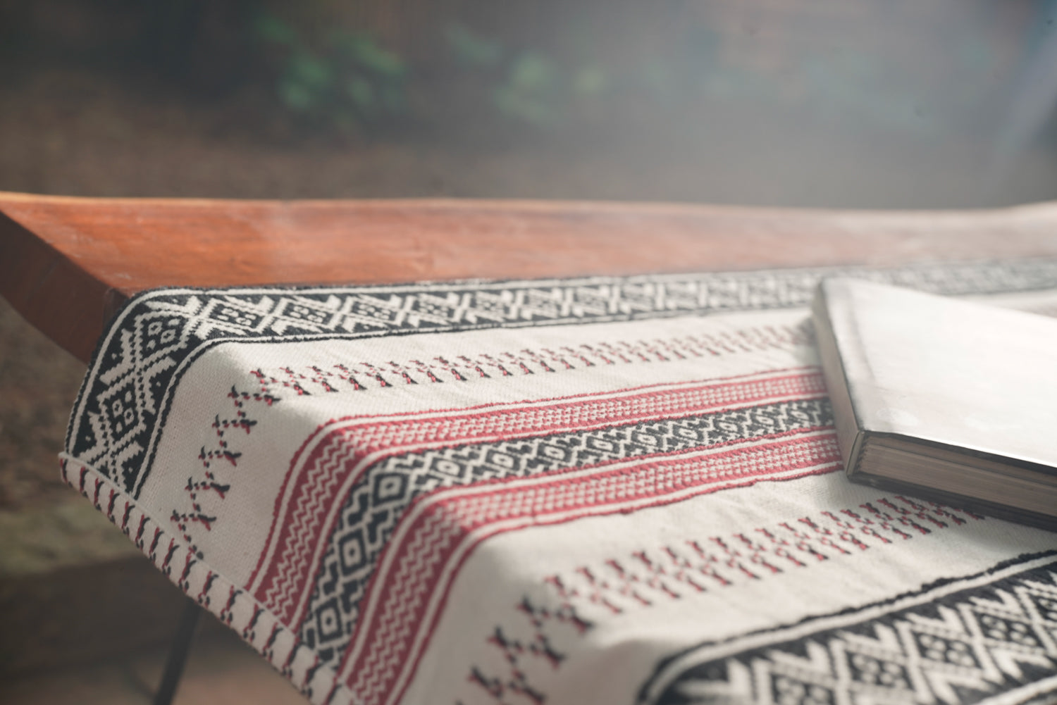 Our collection of table runners celebrates the exquisite craftsmanship of Toda artistry. Made with the locally sourced traditional cotton, each runner is hand-embroidered with motifs that include both historic and contemporary designs. The precise geometric patterns are created by counting threads across the warp and weft, a technique that demands patience and skill.