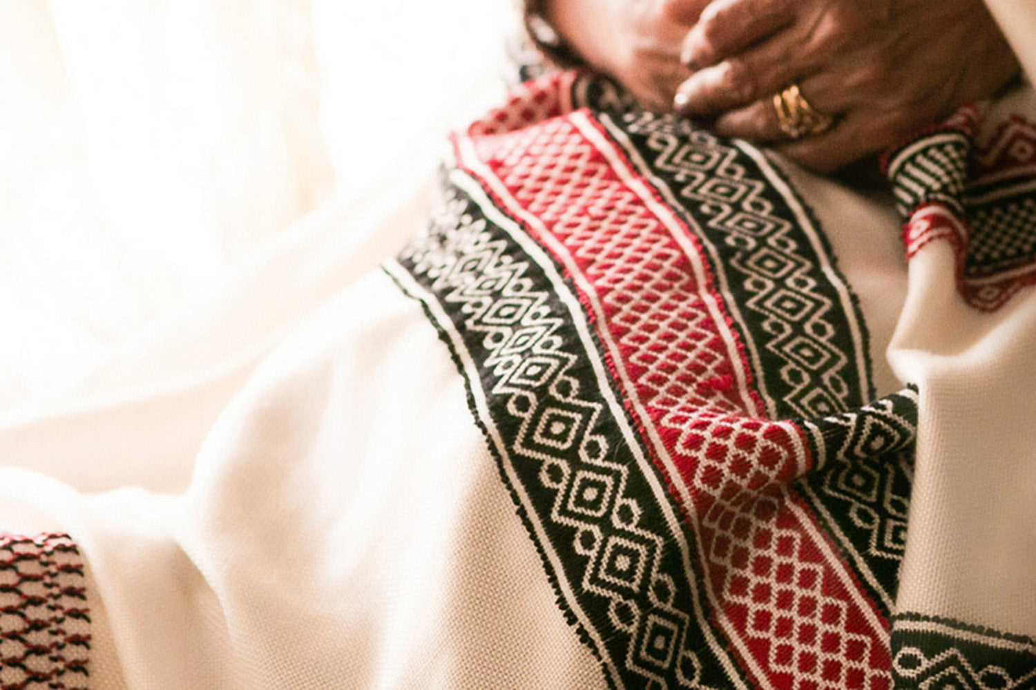 Made by an indigenous woman-artisan, this work of art takes three weeks to hand-embroider and comes with a note about the maker and her photo. Read our story below.