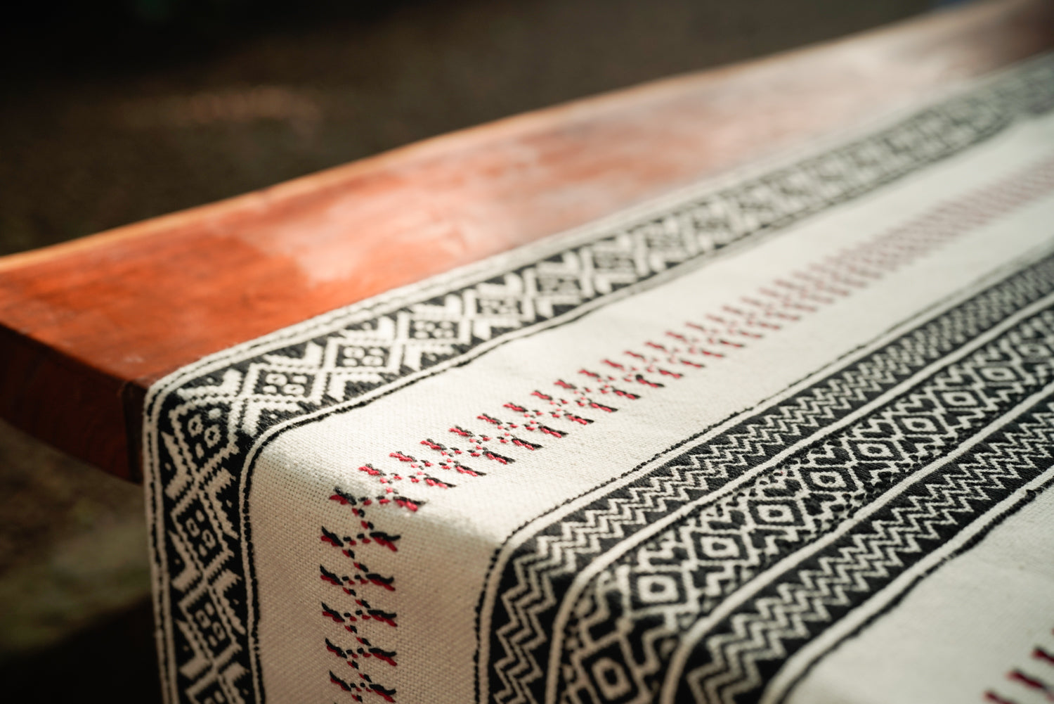 Our collection of table runners celebrates the exquisite craftsmanship of Toda artistry. Made with the locally sourced traditional cotton, each runner is hand-embroidered with motifs that include both historic and contemporary designs. The precise geometric patterns are created by counting threads across the warp and weft, a technique that demands patience and skill.